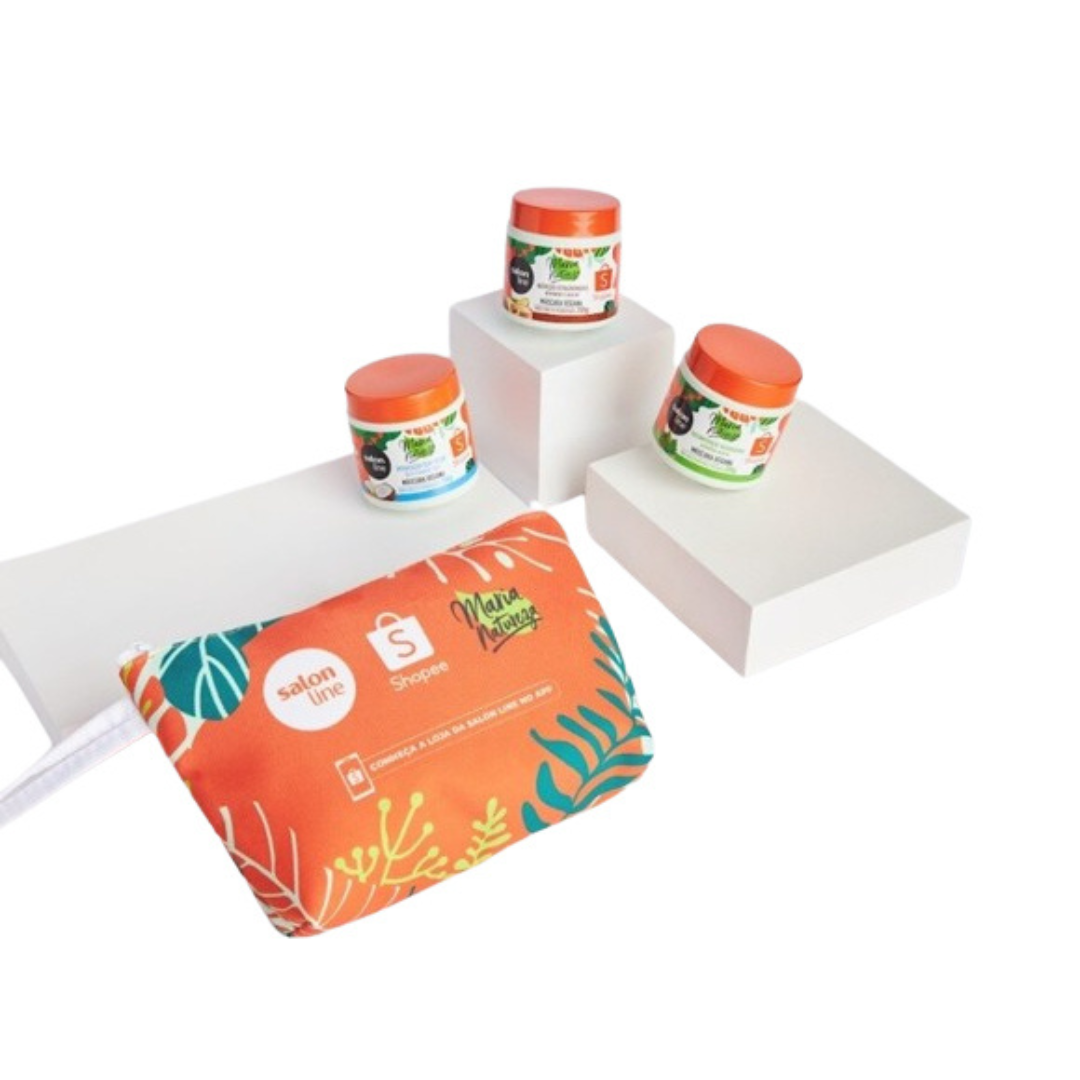 Kit Salon Line Cronograma Capilar é um kit especial em parceria das duas marcas que conta com 3 Máscaras de Tratamento, sendo 1 Máscara de Hidratação Sem Pesar, 1 Máscara de Nutrição Extraordinária e 1 Máscara de Reconstrução Reparadora. Além de uma linda necessaire.