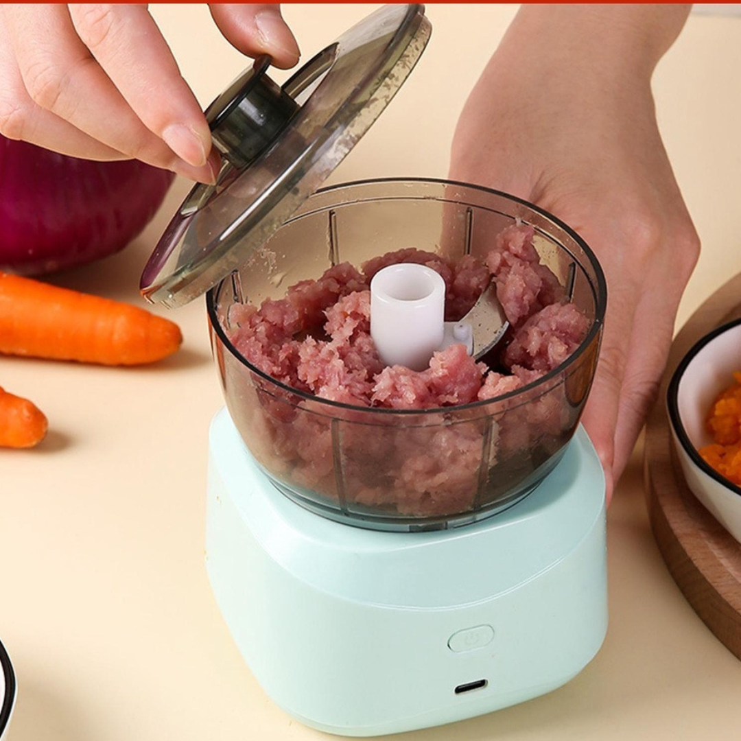 O mini processador automático de alimentos é perfeito para alho ralado, gengibre ralado, carne picada, cenoura ralada, abóbora ralada, etc.